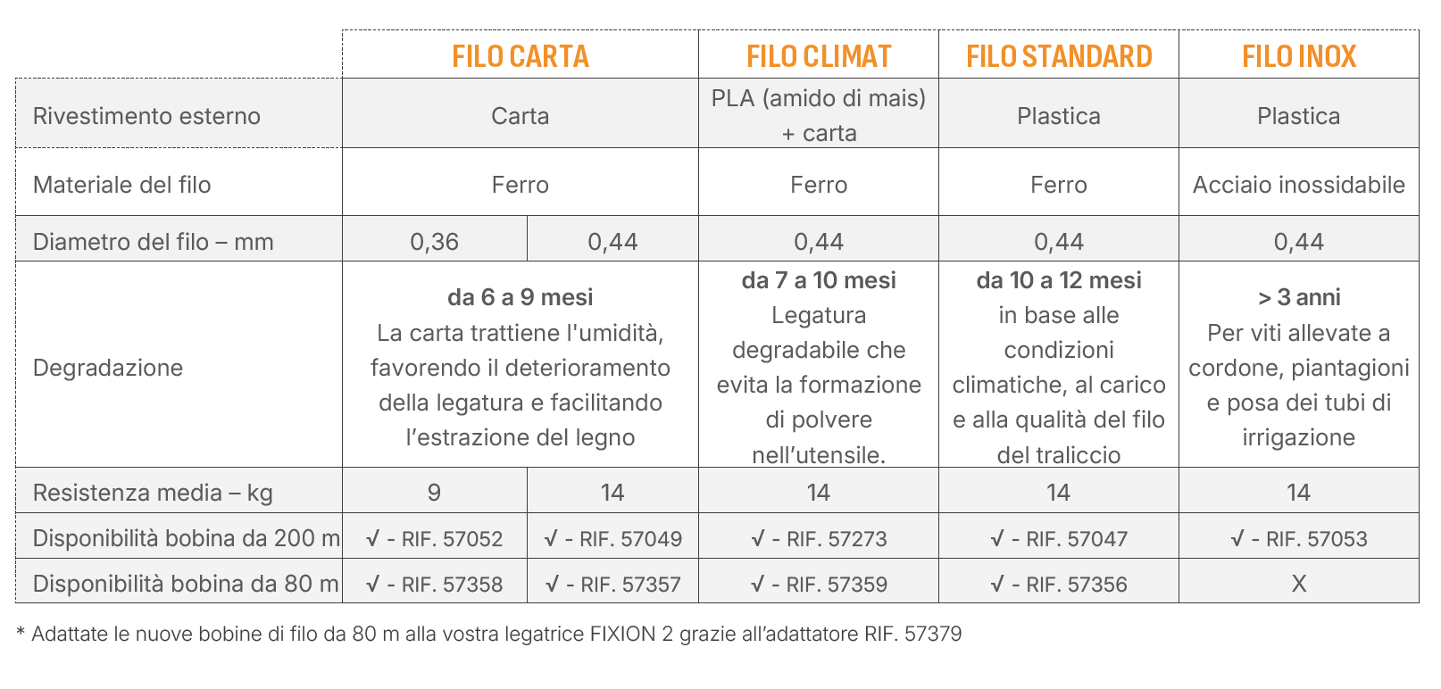 Tabella gamma fili Pellenc
