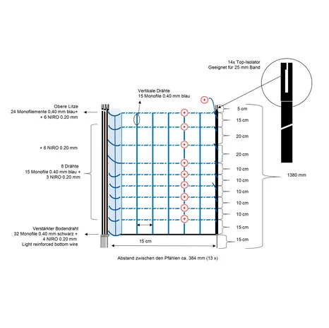 Rete elettrificata Euronetz Kombi 150/2 blu, con fili orizzontali di rinforzo, Anti-Lupo – Wolfnetz