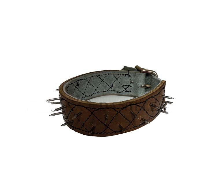 VRECCALE – COLLARE ANTILUPO IN CUOIO CON CHIODI